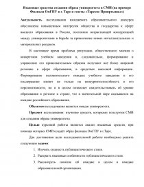 Предмет исследования: изучение средств, которыми пользуется СМИ для создания образа университета.