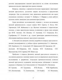 Среди российских исследователей, стоявших у истоков исследования женской криминальности, следует назвать М.Н. Гернета, А. Кетле, П.Н. Тарновскую, И.Я. Фойницкого и др. Научные положения и теоретические подходы, а также практические выводы, изложенные в трудах таких авторов как Ю.М. Антонян, Т.Н. Волкова, С.Г. Куликова, С.С. Остроумов, В.А. Серебрякова, Е.Г. Телегина и др., служат ориентиром криминологического обоснования проблемы женского преступного поведения.
