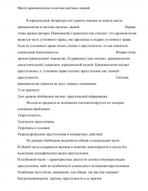 В юридической литературе нет единого мнения по поводу места криминологии в системе научных знаний. Первая точка зрения (авторы- Пинковский, Герцензон) они считают, что криминология является часть уголовного права, она зародилась в недрах уголовного права. Если из уголовного права изъять учение о преступности, то она лишиться социальной наполненности. Вторая точка зрения (принадлежит Аванесову, Кудрявцеву) они считают, криминологию самостоятельной, социально -юридической наукой. Криминология изучает преступление, а уголовное право изучает преступление как элемент преступности. Система криминологии строится на двух главных основаниях: