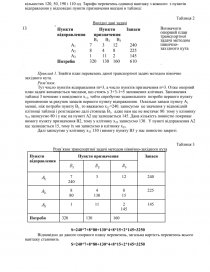 Окремо слід розглянути випадок, коли на деякому кроці (але не останньому) може виявитися, що потреби чергового пункту призначення дорівнюють запасам чергового пункту відправлення. У цьому випадку також тимчасово виключають з розгляду або стовпець, або рядок (що-небудь одне). Таким чином, або запаси відповідного пункту відправлення, або потреби даного пункту призначення вважаються рівними нулю. Цей нуль записують у чергову клітину, що заповнюється. Зазначені вище умови гарантують отримання m+n-1 зайнятих клітин, в яких стоять компоненти опорного плану, що є вихідною умовою для перевірки останнього на оптимальність і знаходження оптимального плану.