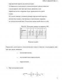 Обработка изделия производится на шести операциях. Длительность операций по вариантам приведена в табл. Работа производится в две смены по 8 часов. Количество рабочих дней в 2019 году – 247. Размер обрабатываемой и передаточной партий приведены по вариантам в табл.