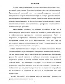 Степень изученности данного вопроса нельзя оценить однозначно. В наши дни креолизованный рекламный текст претерпевает значительные изменения, так как авторы таких текстов вынуждены подстраиваться под современные реалии. По данной причине в свободных источниках информации об актуальных трендах в области создания текстов такого типа находится довольно мало. Такое положение дел требует от исследователей данного вопроса постоянной актуализации своих научных подходов в соответствие с требованиями времени, а научных работ по теме исследования, которые были бы актуальными по состоянию на 2022 год, на сегодняшний день явно недостаточно.