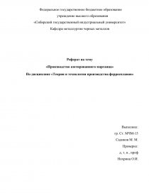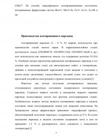 Азотированный марганец получают насыщением (продувкой) N2 расплава металлическим Мn в жидком состоянии (1 - 2 % N) или азотированием N2 порошка металлического марганца при 900 - 950 °С ввакууме (133,3 Па), обеспечивающим содержание 5-6 % N. Технология твердофазного азотирования Mn более эффективна и используется в качестве основном на Запорожском ферросплавном заводе (Украина). По технологии твердофазового азотирования получают также азотированный силикомарганец с использованием в качестве исходного силикомарганец CMн17. По способу твердофазового азотированияможно изготовлять азотированные ферросплавы систем Мn-Сr, Мn-Сr-Si, Fе-V, Fе-Сr, Fу-Nb и др.