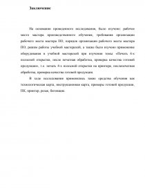 В данной курсовой работе изучена организация рабочего места мастера профессионального обучения, так же оборудование в учебной мастерской при изучении темы: «Печать 4х полосной открытки, после печатная обработка, проверка качества готовой продукции»