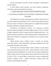 1.1. Культурно-историческая платформа развития печатной рекламы ……………………………………………………………. | 5 |