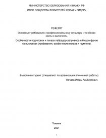 2. Особенности подготовки и показа на выставке лабрадор-ретривера……………………………………………………………………...…5