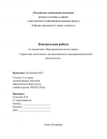 «Туристская деятельность как разновидность предпринимательской деятельности»