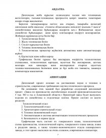 Сызбалық материалдар тізімі Бас жоспар сызбасы, зауыттың қима көрінісі, технологиялық картасы, технологиялық тізбегі, автоматика сызбасы, техника-экономикалық көрсеткіштер сызбасы.