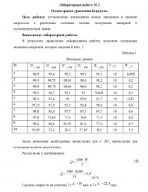 Цель работы: установление взаимосвязи между давлением и средней скоростью в различных сечениях потока; построение напорной и пьезометрической линии.