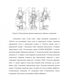 1-заполнение (таб); 2-слив (таб); 3-кран включения охлаждения; 4; 19-болты для регулировки клина стола и сверлильной головки; 5-рукоятка перемещения стола и сверлильной головки; 6; 18-винты зажима стола и сверлильной головки; 7-заземление (таб); 8-вводной выключатель; 9-главный переключатель (таб); 10-сигнальная кнопка СТАНОК ВКЛЮЧЕН; 11-кнопка включения правого вращения шпинделя; 12- кнопка включения левого вращения шпинделя;11; 12 правое и левое вращение шпинделя(таб) 13-кнопка включения качательного движения шпинделя при переключении скоростей и подач; 14-рукоятка переключения скоростей; 15-кнопка СТОП; 16-частота вращения (таб); 17- менять скорость только при остановке (таб); 20-подача, мм за один оборот (таб); 21-рукоятка переключения подач; 22-кнопка включения ручной подачи; 23-штурвал механизма подач; 24-лимб для отсчета глубины обработки; 25-выключатель освещения; 26- охлаждение (таб); 27-выключатель насоса охлаждения; 28-кулачок для настройки глубины обработки;.