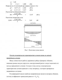 Шаг рёбер принимается из расчёта верхней фанерной обшивки на местный изгиб поперёк волокон на монтажную нагрузку, которая представляет собой сосредоточенную силу Pн = 1 кН (вес монтажа с инструментами) с коэффициентом надёжности по нагрузке γf = 1,2.