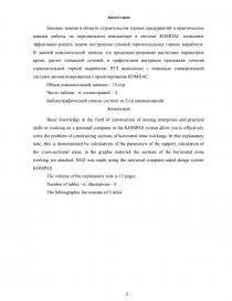 Базовые знания в области строительства горных предприятий и практические навыки работы на персональном компьютере в системе КОМПАС позволяют эффективно решать задачи построения сечений горизонтальных горных выработок. В данной пояснительной записке это продемонстрировано расчетами параметров крепи, расчет площадей сечений, в графическом материале приложено сечения горизонтальной горной выработки. РГЗ выполнено с помощью универсальной системы автоматизированного проектирования КОМПАС.