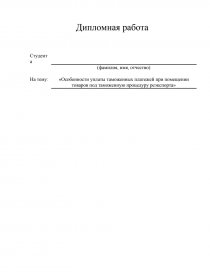 На тему: | «Особенности уплаты таможенных платежей при помещении товаров под таможенную процедуру реэкспорта» |