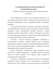 Во второй главе рассматривается планирование персонала в таможенных органах. В первом параграфе изучается организационно-штатная структура таможенного органа и нормативный метод планирования труда.