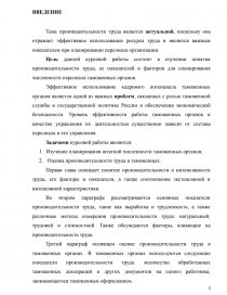 Цель данной курсовой работы состоит в изучении понятия производительности труда, ее показателей и факторов для планирования численности персонала таможенных органов.