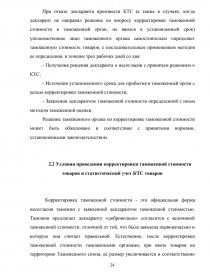 2.2 Условия проведения корректировки таможенной стоимости товаров и статистический учет КТС товаров………………………………………….23