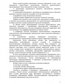 Метод архитектурной композиции генплана аэропортов в силу этого оказывается аналогичным родственным областям архитектурного проектирования. Здесь намечаются четыре следующих этапа: