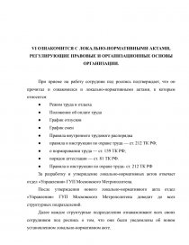 - Ознакомиться с локально-нормативными актами, регулирующие правовые и организационные основы организации.