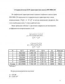 По графическим характеристикам заданного нефтяного насоса серии НМ 5000-210 определим его гидравлическую характеристику в виде аппроксимации: по методу наименьших квадратов. Для этого необходимо взять 5 точек в рабочей зоне. [pic 1]