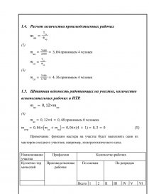- Штатная ведомость работающих на участке, количество вспомогательных рабочих и ИТР.