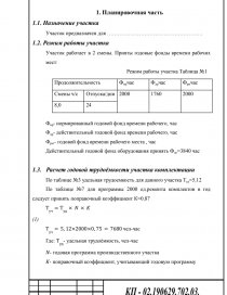 Участок работает в 2 смены. Прияты годовые фонды времени рабочих мест: