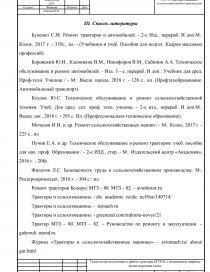 Требования безопасности. При техническом обслуживании и ремонте тракторов принимают меры против их самостоятельного перемещения. Запрещается техническое обслуживание и ремонт трактора с работающим двигателем, за исключением случаев его регулирования. Подъемно-транспортное оборудование должно быть в исправном состоянии и использоваться только по своему прямому назначению. К работе с этим оборудованием допускаются лица, прошедшие соответствующую подготовку и инструктаж. Во время работы не следует оставлять инструменты на краю осмотровой канавы, на подножках, капоте или крыльях автомобиля. При сборочных работах запрещается проверять совпадение отверстий в соединяемых деталях пальцами: для этого необходимо пользоваться специальными ломиками, бородками или монтажными крючками. Во время разборки и сборки узлов и агрегатов следует применять специальные съемники и ключи. Трудно снимаемые гайки сначала нужно смочить керосином, а затем отвернуть ключом. Отвертывать гайки зубилом и молотком не разрешается. Запрещается загромождать проходы между рабочими местами деталями и узлами, а также скапливать большое количество деталей на местах разборки. Повышенною опасность представляют операции снятия и установки пружин, поскольку. В них накоплена значительная энергия. Эти операции необходимо выполнять на стендах или с помощью приспособлений, обеспечивающих безопасную работу. Гидравлические и пневматические устройства должны быть снабжены предохранительными и перепускными клапанами. Рабочий инструмент следует содержать в исправном состоянии. Требования производственной санитарии и промышленной гигиены. Помещения, в которых рабочие, выполняя техническое обслуживание и ремонт трактора, должны находиться под ним, необходимо оборудовать осмотровыми канавами, эстакадами с направляющими предохранительными ребордами или | ||||||