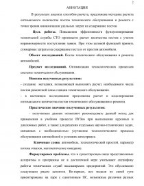 - создание методики, позволяющей выполнять расчет, необходимого числа постов ремонтной зоны станции технического обслуживания.