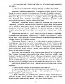 Дипломдық жұмыстың қысқаша мазмұны немесе сұрақтарды дайындау тізбесі: