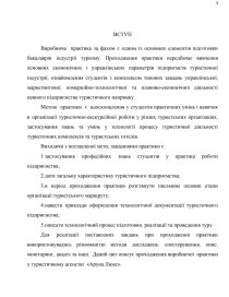 Виробнича практика за фахом є одним із основних елементів підготовки бакалаврів індустрії туризму. Проходження практики передбачає вивчення основних економічних і управлінських параметрів підприємств туристичної індустрії, ознайомлення студентів з комплексом типових завдань управлінської, маркетингової, комерційно-технологічної та планово-економічної діяльності певного підприємства туристичного напрямку.