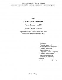 Успішна діяльність і динамічний розвиток кожної організації ,незалежно від її форми власності та галузевої приналежності, залежить від ефективної роботи зовнішнього і внутрішнього середовища діяльності організації. На цьому ґрунтується мета моєї практики: дослідити організацію діяльності туристичного агентства,використовуючи набуті теоретичні знання. Об'єктом досліджень стала туристичне агентство "Едем Різорт & Спа", де я проходила практику у період з 22 грудня 2014р. по 10 січня 2015 року.