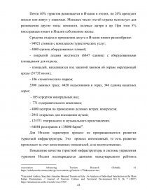 2.2 Комплексная характеристика современного состояния туристской инфраструктуры Италии 39