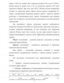 Предмет исследования – особенности организации и управления туристкой отраслью Италии.