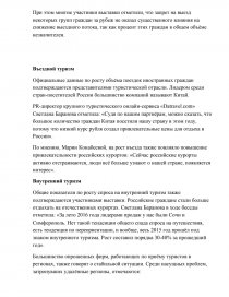 По прогнозам Ростуризма, рост внутреннего туризма составит до 10% в этом году. За 2016 год рост спроса на внутренний туризм составил до 10-15%. Данная ситуация обусловлена следующими причинами: