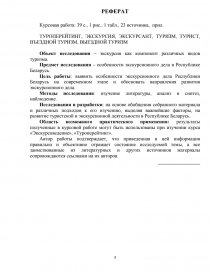 Исследования и разработки: на основе обобщения собранного материала и различных подходов к его изучению, выделяя важнейшие факторы, на развитие туристской и экскурсионной деятельности в Республике Беларусь.