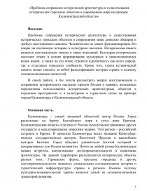 «Проблема сохранения исторической архитектуры и существования исторических городских объектов в современном мире на примере Калининградской области»