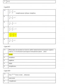 V1 | Екінші ретті беттердің ішіндегі айналу эллипсоидының теңдеуін көрсетіңіз: |