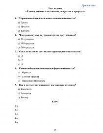 Предмет исследования - законы в математике, искусстве и природы.