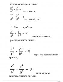 Уравнения эллипса, гиперболы, параболы и уравнение окружности [pic 21] после преобразований (раскрыть скобки, перенести все члены уравнения в одну сторону, привести подобные члены, ввести новые обозначения для коэффициентов) можно записать с помощью единого уравнения вида