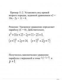 Пример 11.2. Установить вид кривой второго порядка, заданной уравнением х2 + 10х - 2у + 11 = 0.