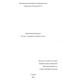 Предмет исследования: способы генерации случайных чисел и методы доказательства их «случайности».