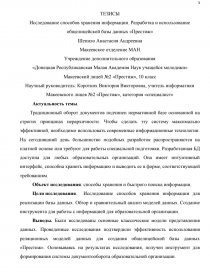 ИССЛЕДОВАНИЕ СПОСОБОВ ХРАНЕНИЯ ИНФОРМАЦИИ. РАЗРАБОТКА И ИСПОЛЬЗОВАНИЕ ОБЩЕЛИЦЕЙСКОЙ БАЗЫ ДАННЫХ «ПРЕСТИЖ»