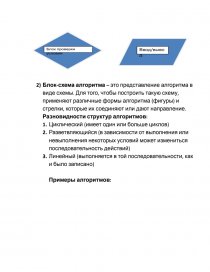 - Разветвляющийся (в зависимости от выполнения или невыполнения некоторых условий может измениться последовательность действий)