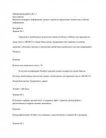 Определить необходимое количество памяти (в битах и байтах) для хранения на диске текста «ЗИЭФ-211 Леман Константин Эдуардович» (без кавычек со своими данными, соблюдая строчные и прописные начертания символов) в системе кодирования Windows.