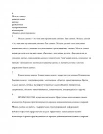 Преимущества реляционной модели простота, удобство физической реализации на ЭВМ обработки, эффективность недостатки реляционной модели отсутствие стандартных средств идентификации отдельных записей и сложность описания иерархических и сетевых связей, примеры реляционной модели базы данных: dBaseIIIPlus и dBaseIY ( фирма Эштон-Тейт), в DB2(в IBM), R: на выбор (Microrim), для FoxPro ранних версий и FoxBase (Fox и программного обеспечения), в Paradox и dBase для Windows (в среде Borland), FoxPro и б.поздних версий, визуальный FoxPro доступа и (Майкрософт), отель Clarion (Кларион программного обеспечения), Ingres (ASK Computer Systems)и Oracle (Оракул) (с русского): ПАЛЬМА (ИК АН УССР), HyTech (МИФИ) Объектно-реляционный: Oracle 8.x