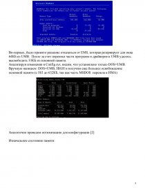 - Блок [COMMON] выполняется независимо от выбора конфигурации, где команды DEVICE загружают драйверы HIMEM.SYS и EMM386.EXE. Драйвер HIMEM.SYS управляет расширенной памятью. Драйвер EMM386 эмулирует защищенный режим работы процессора 80386. При использовании с переключателем RAM обеспечивается доступ к области верхней памяти(UMB) и эмулируетcя дополнительная память(EMS) за счет расширенной памяти(XMS), которая, кстати говоря, не может быть адресована в реальном режиме. ко