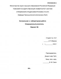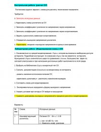 22 | Неинвертирующий усилитель синусоидальных сигналов | Uвх ам = 50 мВ, частота 30 кГц. Кu= 70. -Определить выходное напряжение - Выполнить общие требования |