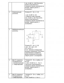 13 | Дифференциальный усилитель | [pic 7] Инв. вх.- Постоянное напряжение Uвх1 = - 60 мВ. Кu1= R2/R1 = 200. Неин.вх. Uвх 2 = - 80 мВ. R3=3*R4 . -Определить выходное напряжение. - Выполнить общие требования. |