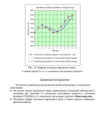 - добавлением в диаграмму, построенную по исходному временному ряду, линии тренда на основе метода линейнойфильтрации.