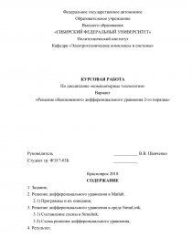 «Решение обыкновенного дифференциального уравнения 2-го порядка»