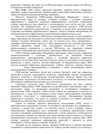 productivity. Ultimately, the proper use of CRM technologies can greatly improve the efficiency of educational institution management.